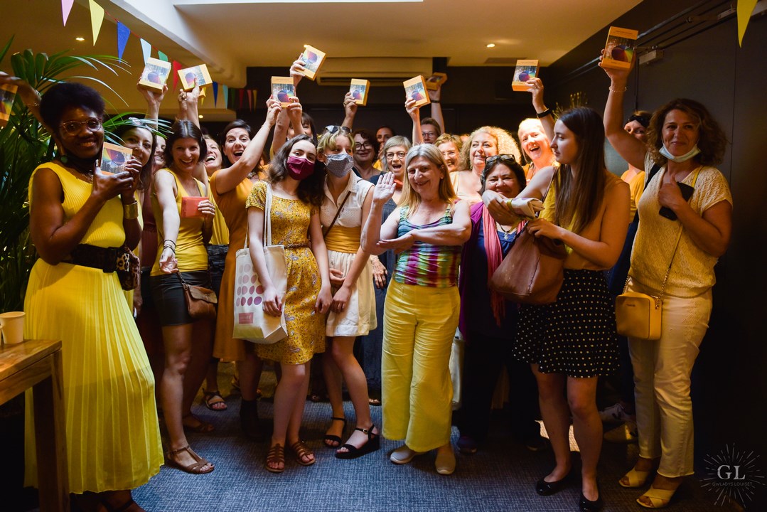 J’ai fait des tirages en direct à 25 personnes du public, découvrez leurs émotions en réaction aux messages des couleurs. Nous avons poursuivi la soirée par une séance de dédicaces du coffret l’Oracle des couleurs, accompagnée d’un buffet arc-en-ciel, conçu et réalisé par Elisabeth Smeysters de Myam Bio. La fête était incroyable.